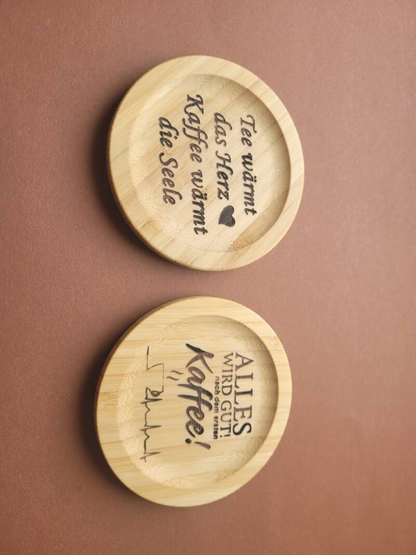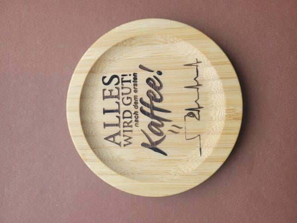 Glas/Tassenuntersetzer/deckel Ø 9cm mit wunsh Gravur