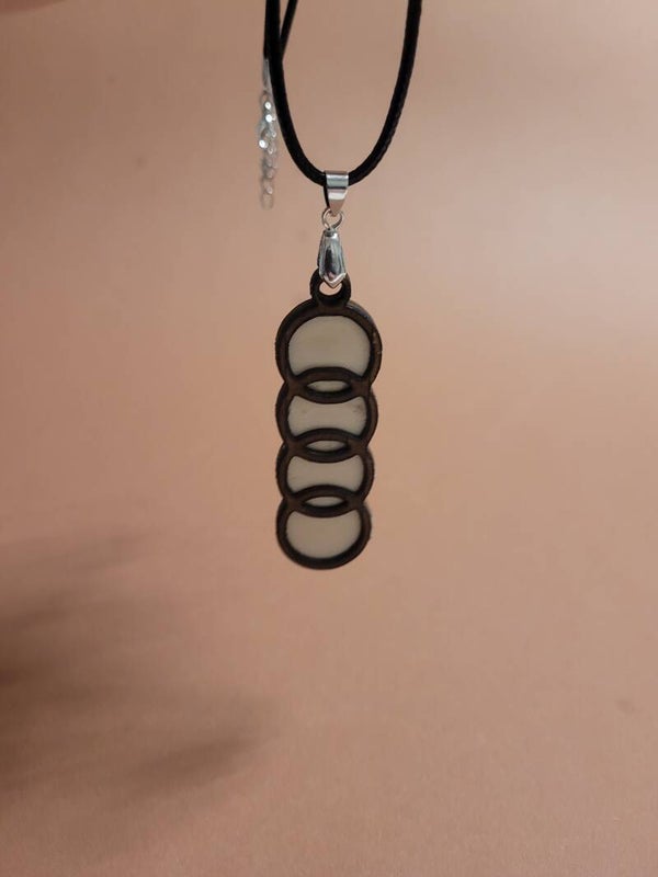 der Rückspiegelanhänger wird aus Sperrholzplatten Lindenholz 1,5 mm stärke gelasert und zusammen geklebt.Schnur ist ein Halsketten Wachs Schnur .
