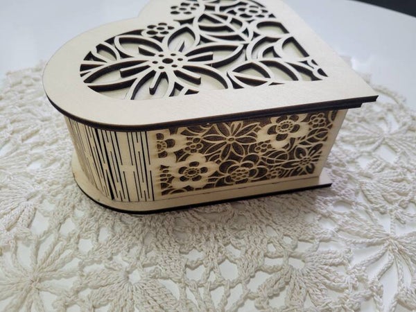 Holz BOX, Schmukschatulle Herzförmig, lasergeschnitten