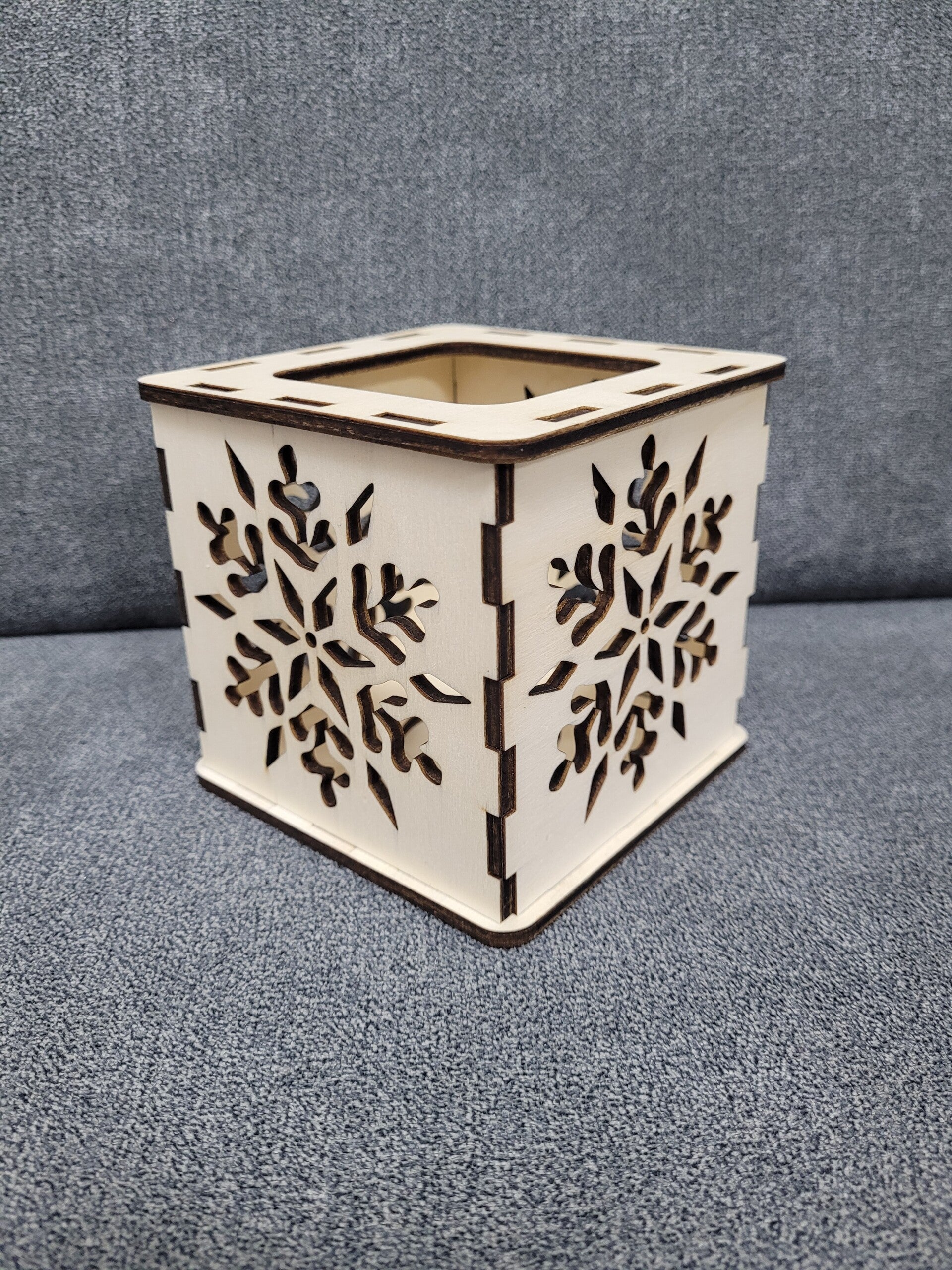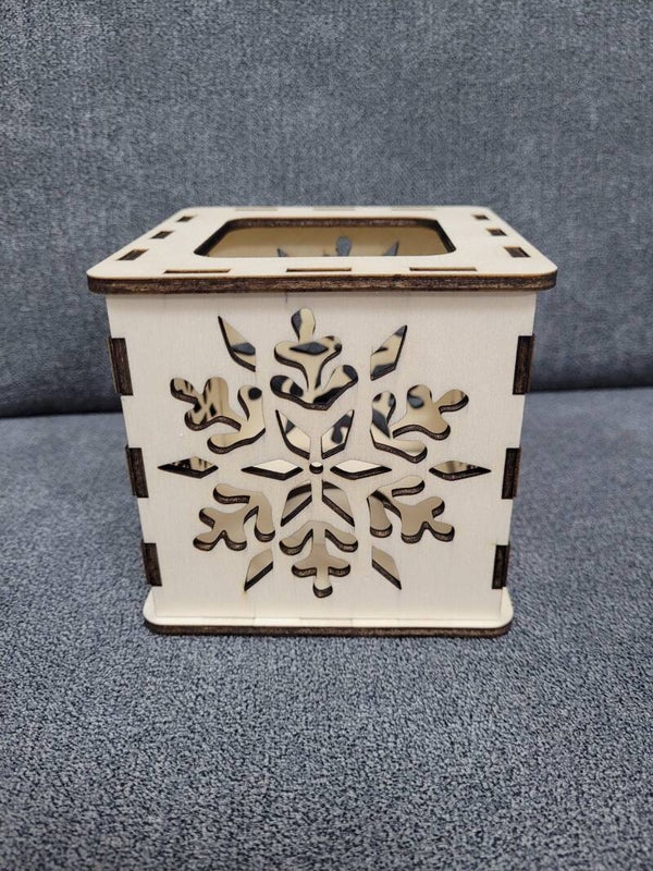 Dieser tolle Design-Teelichthalter aus Holz hat eine Stärke von 4mm Holz. Er ist ca.10 x 10 x10 cm groß. Er verbreitet ein tolles, gemütliches Licht und zaubert zudem einen super Lichtschattenspiel in den Raum; ideal in der Weihnachtszeit oder als Weihnachtsgeschenk.