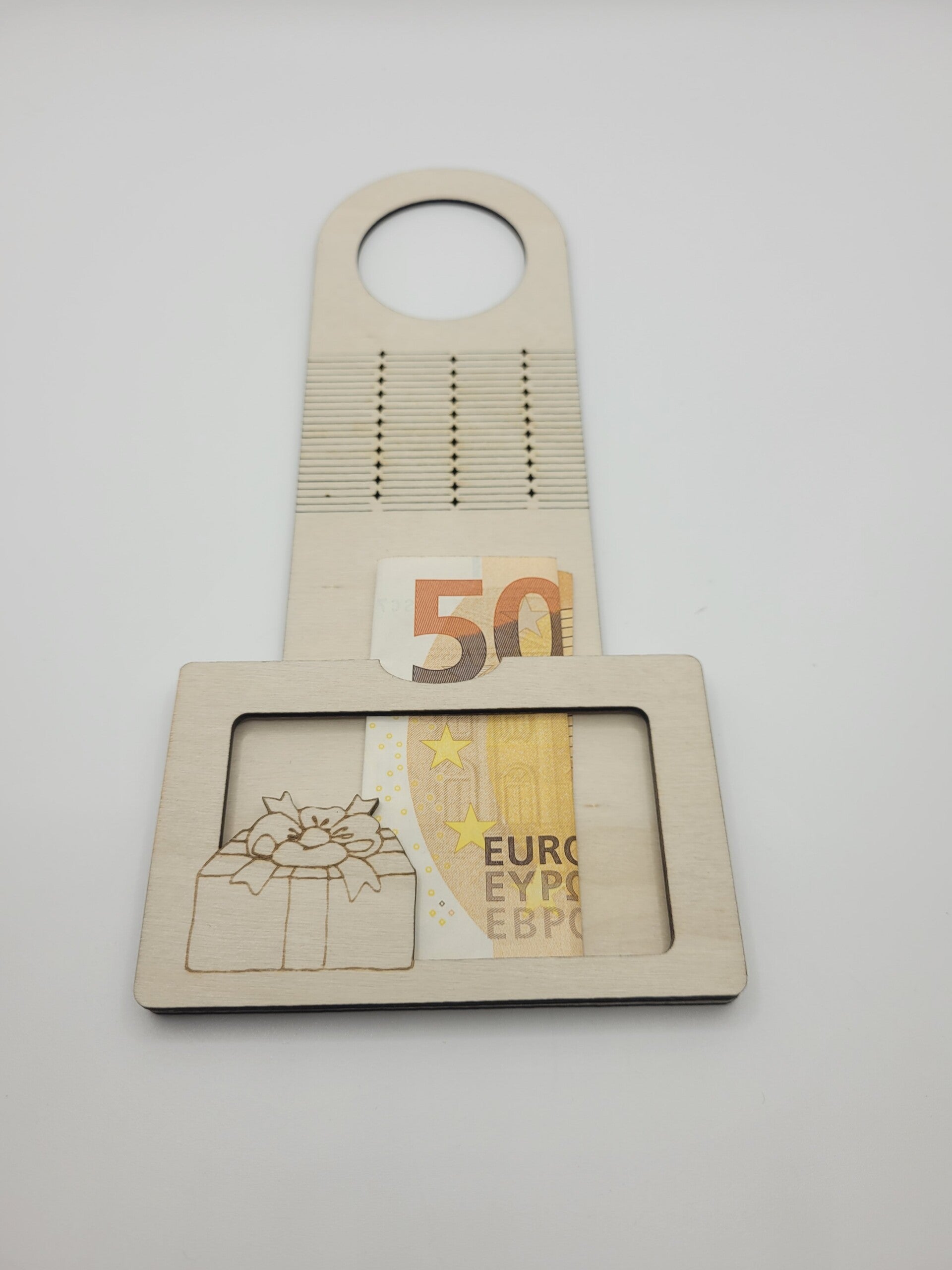 Flaschenanhänger, personalisierbarer Flaschenanhänger, Weinflasche aufpäppeln mit Gutschein/Geldschein